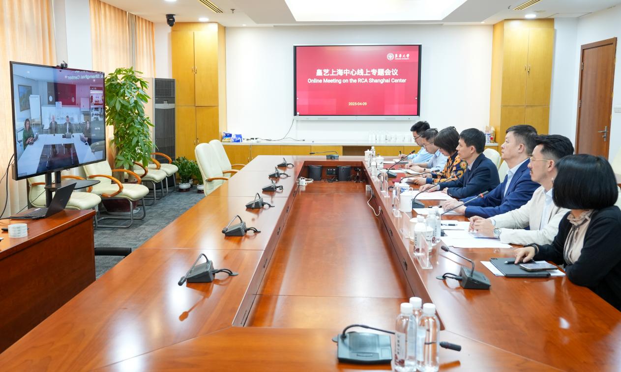 On April 9, President Xiang Yanxun of DHU held an online meeting with Professor Christoph Lindner, President of the Royal College of Art(RCA), UK. The two sides engaged in in-depth discussions on refiningareas of collaboration and co-establishing the ShanghaiCentre, reaching significant consensus. Also attending the meeting were Professor Ken Neil, Vice President of RCA, Professor Chen Ge, Vice President of DHU, and representatives from relevant departments of both institutions.(Meetingin progre