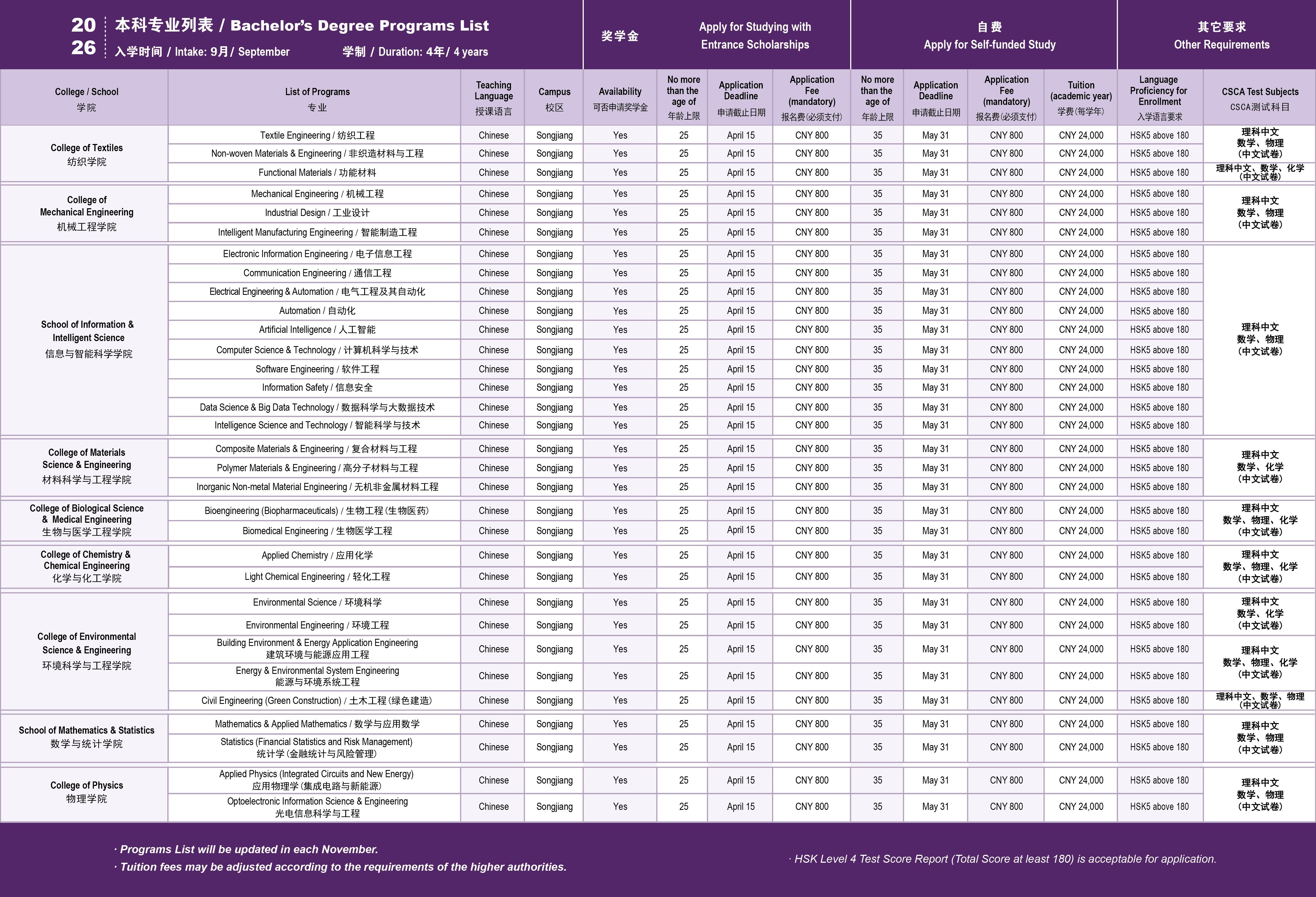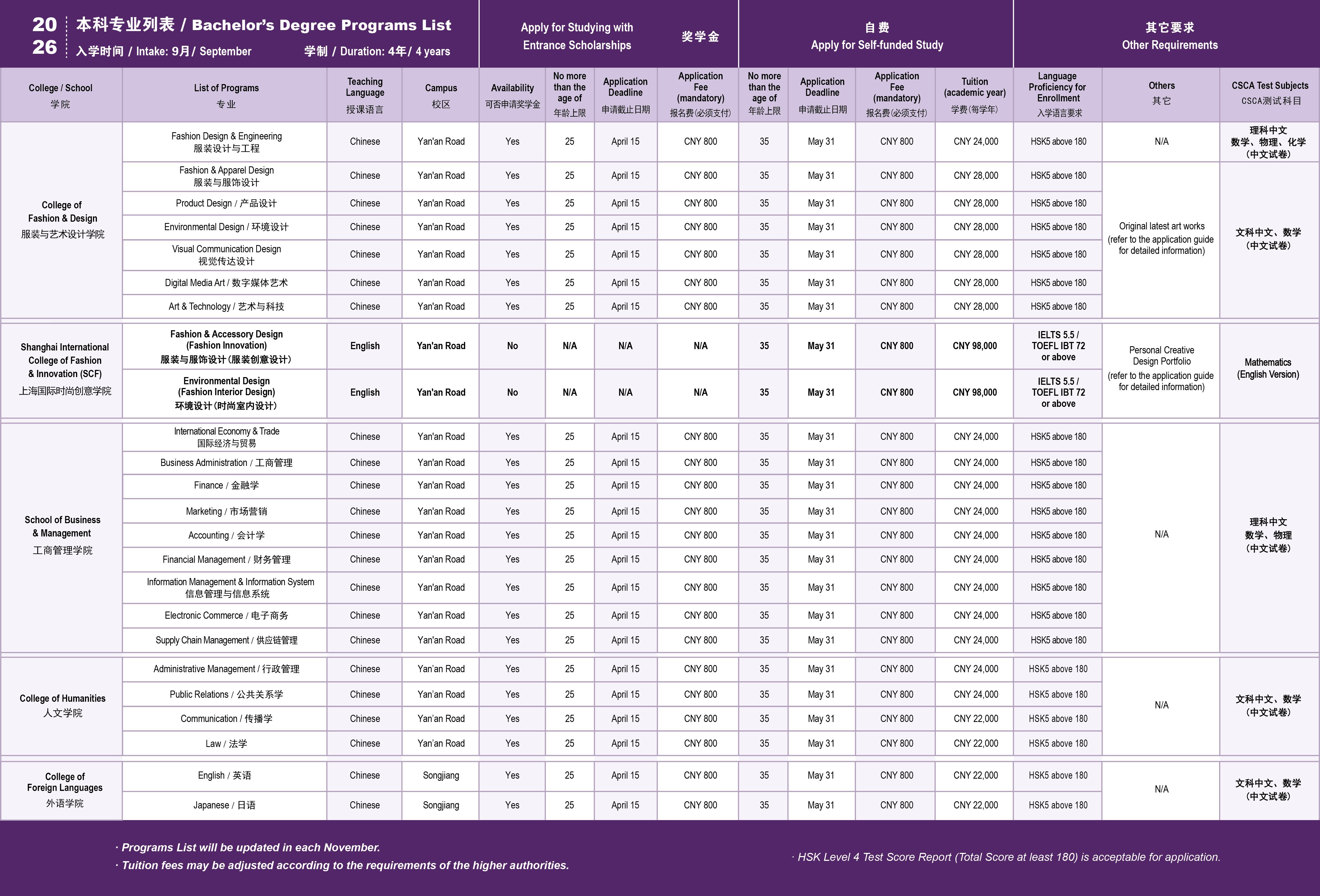 1) All the programs taught in Chinese are introduced in detail here, including the objectives, main courses, major characteristics, and graduation destination of (Chinese students). Except for a few of them, all the others are open to the international students for application. Please refer to the purple table below for details.