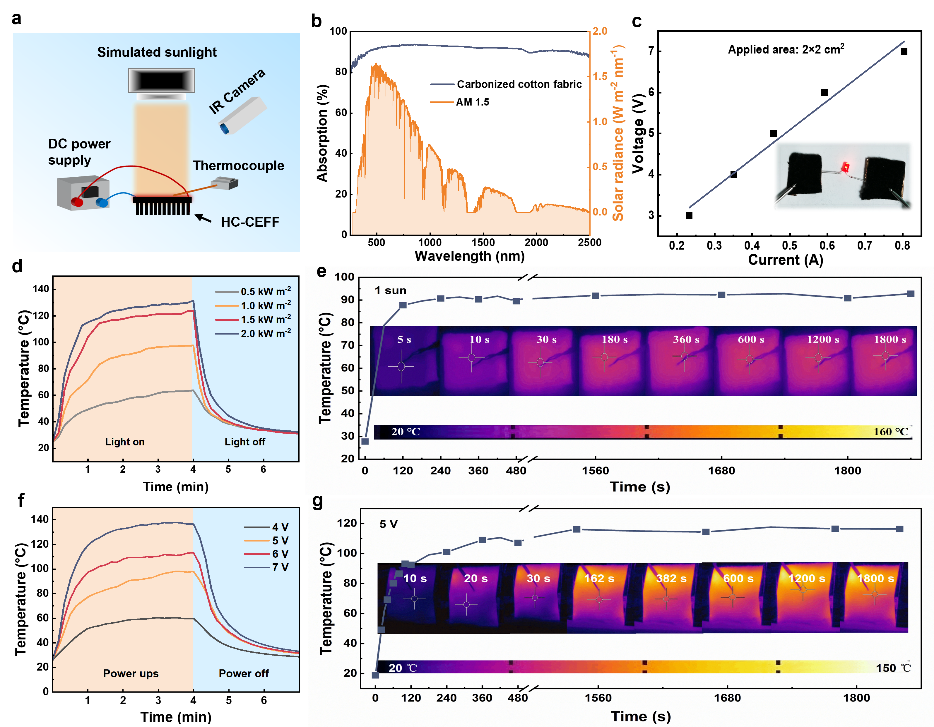 Fig. 4 Photothermal and electrothermal performance data of the HC-CEFF absorber