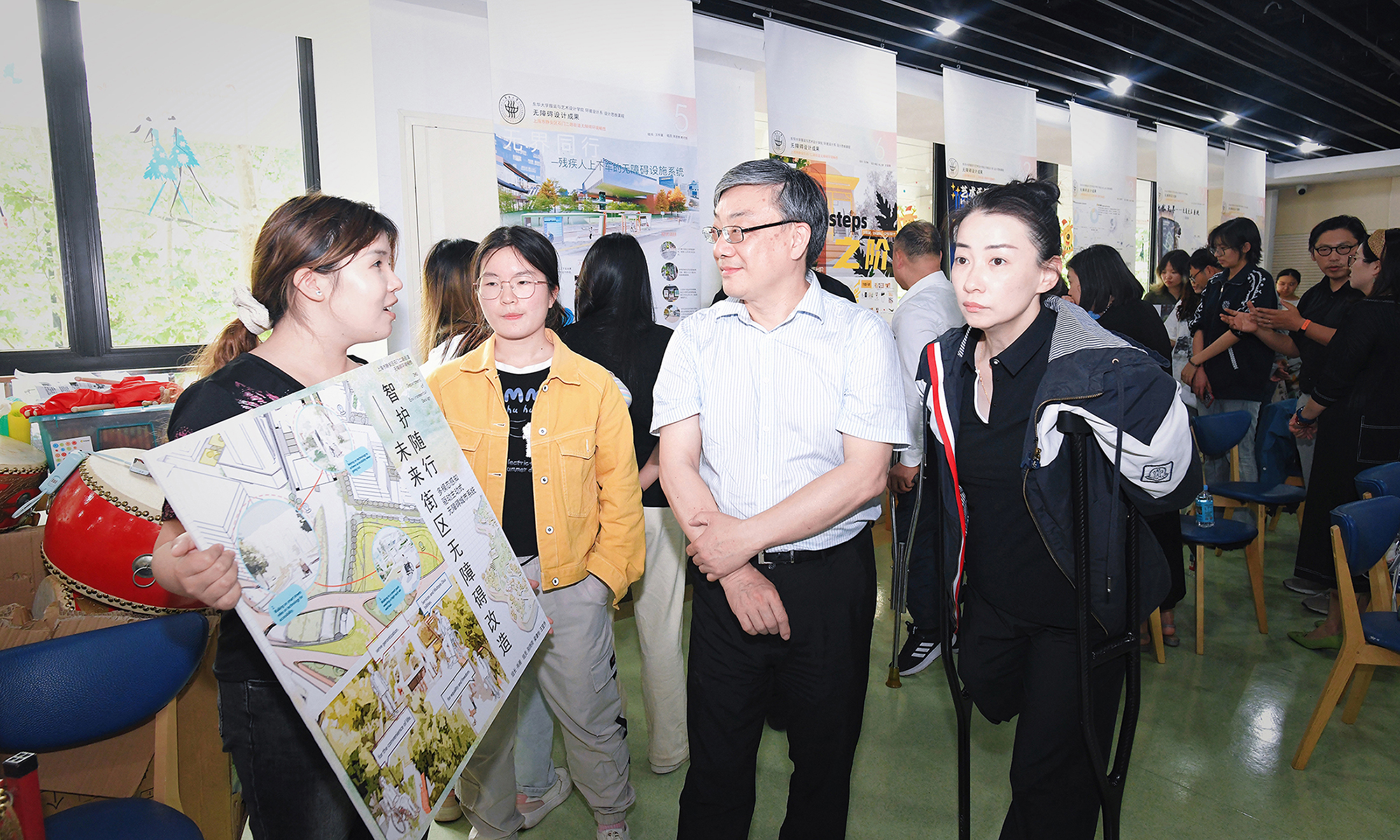 On May 27, DHU held a release ceremony for the outcomes of its barrier-free design course at Shimen Road Number Two Sub-district in Shanghai's Jing'an District. As an innovative initiative integrating industry, academia, and research, the course attracted industry experts, community representatives, and 53 participating students.