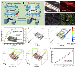 Numerical simulations further validate the efficiency of this design, showing that the engineered microporous structure enhances vapor diffusion, with strong concentration gradients driving mass transfer from the inner layers to the environment (Fig. 4).