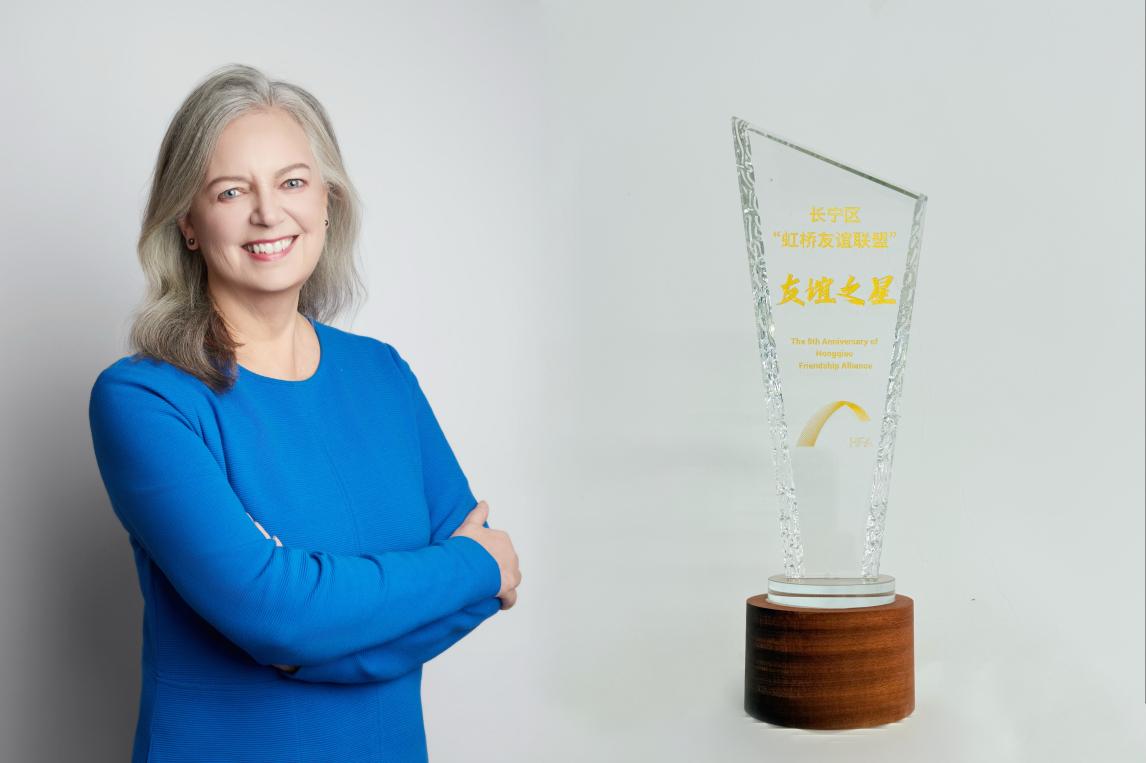 Professor Juliette MacDonald, International Dean of the Shanghai International College of Fashion and Innovation (SCF) at Donghua University, has been awarded the “Star of Friendship” by the Hongqiao Friendship Alliance in Shanghai’s Changning District, recognising her sustained contributions to international exchange and higher education.
